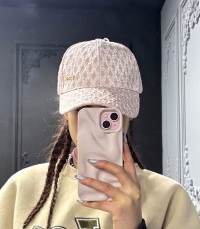 کلاه بیسبالی صورتی طرح دار