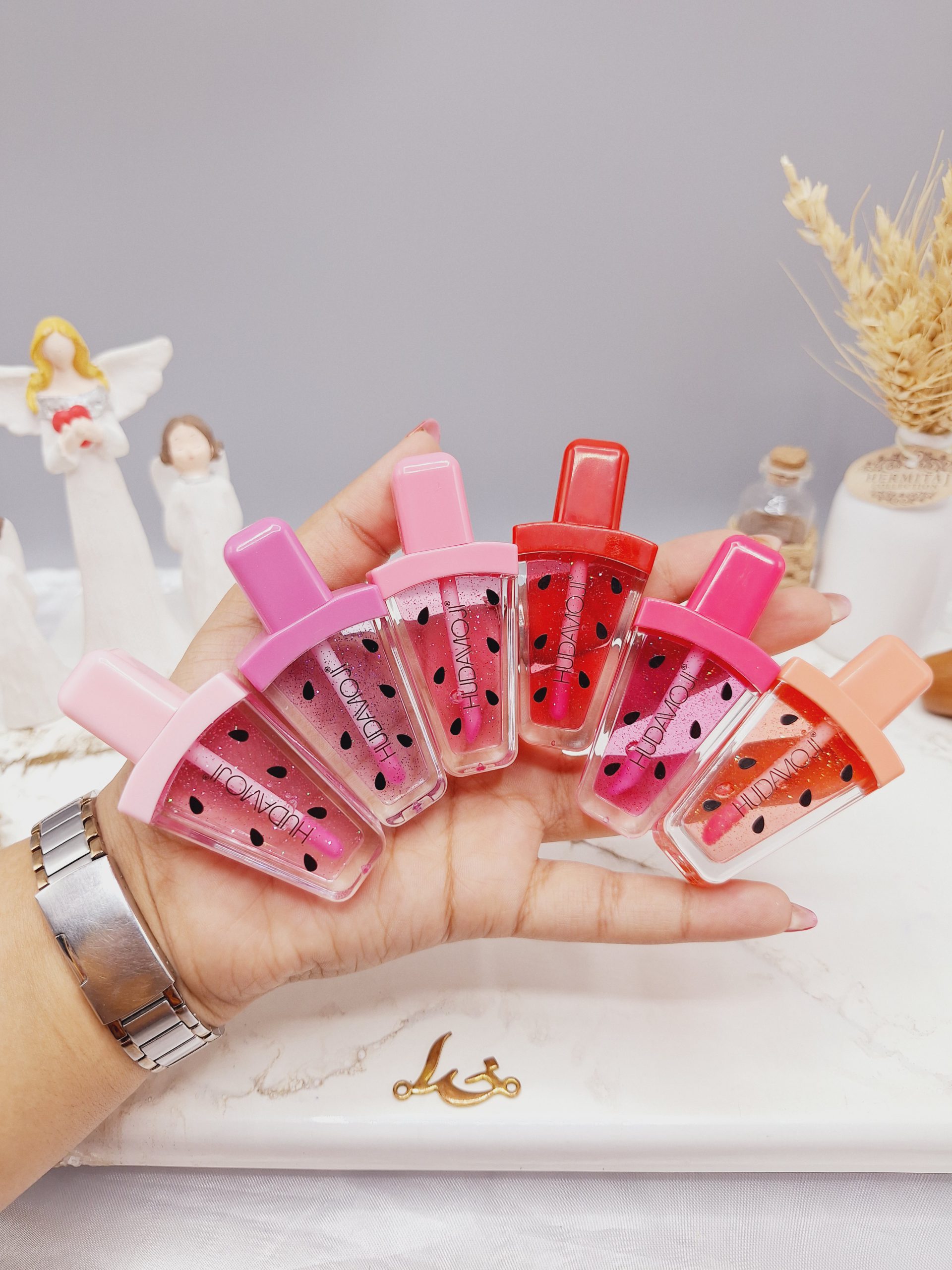 لیپ گلاس شاین دار طرح هندوانه با بوی محشر برند HUDAMOJI کد L738