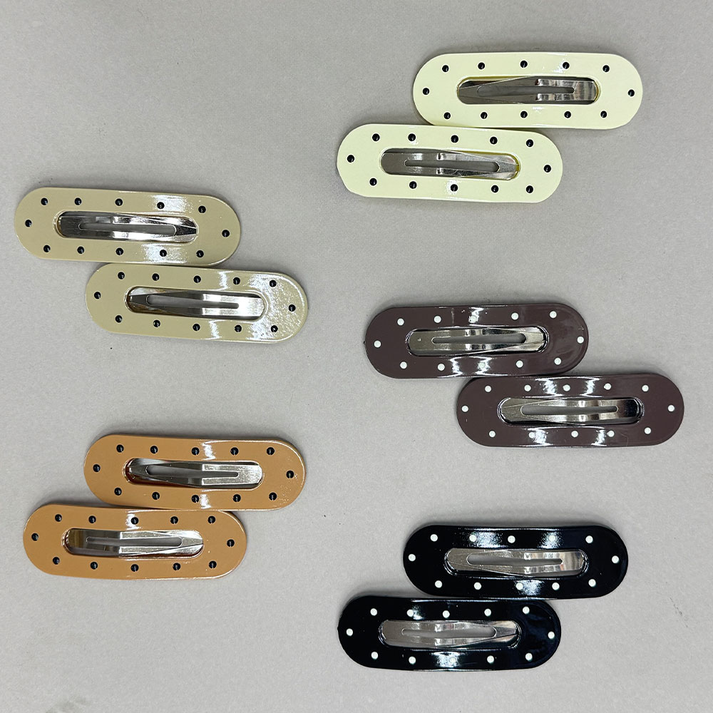 گیره مو طرح بیضی خال خالی در رنگ های متنوع تناژ کرم و قهوه ای موجود است. این گیره انبری مناسب تمامی سنین و انواع مو ها میباشد. این گیره به دلیل کیفیت بالا و جنس مرغوب آن باعث اذیت شدن موهای شما نمیشود.